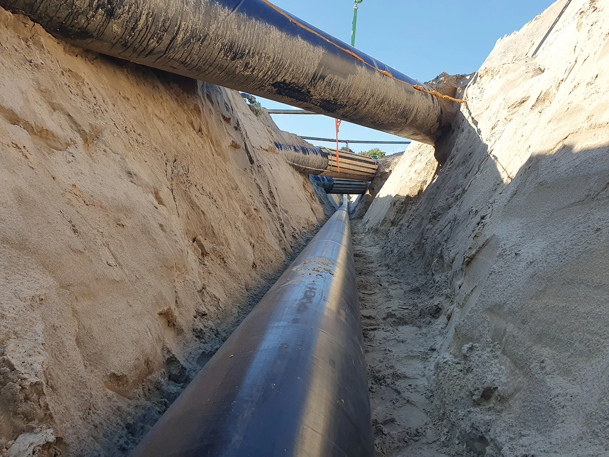Ein zentrales Merkmal dieses Projekts ist die hohe Anzahl an Sonderbauwerken: Insgesamt werden 24 Querungen in geschlossener Bauweise ausgeführt. Zum Einsatz kommen dabei HDD Verfahren, Mikrotunnel und das modifizierte Horizontal-Pressbohrverfahren. Kleinere Straßenquerungen werden zudem mittels Schlagpressung hergestellt. Der Streckenbau wird in offener Bauweise umgesetzt.