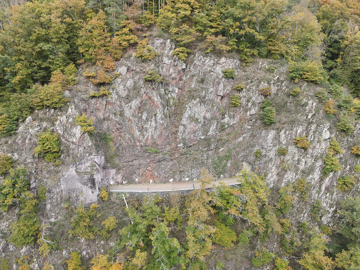 Wir unterstützen das Land Baden-Württemberg als Straßenbaulastträger vertreten durch das Landratsamt Waldshut seit 2024 bei der technischen Planung der Sicherungsmaßnahmen (Entwurfsplanung bis Baubegleitung) und waren parallel auch mit der Überarbeitung der naturschutzfachlichen Genehmigungsunterlagen beauftragt. Mit dem von uns aufgestellten und optimierten Planungsentwurf, sollte die Felssicherung kostengünstiger, umweltverträglicher und mit einem geringeren Verfahrensaufwand, als die bisherigen Entwürfe es vorgegeben haben, realisiert werden.