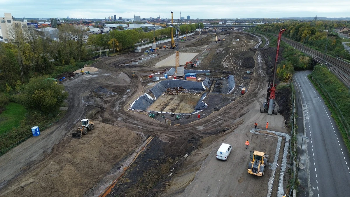 Die DB Fernverkehr AG errichtet derzeit ein neues ICE-Werk am Dortmunder Hafen. Seit Herbst 2021 betreuen wir die Maßnahme mit unterschiedlichen Fachbereichen. Zunächst haben wir mit unserer geotechnischen Baugrunderkundung und unser Kompetenzcenter für Altlasten und Umwelt mit einer verdichteten umwelttechnischen Baugrunderkundung einen entscheidenden Anteil zur Plangenehmigung beigetragen. Seit Anfang 2024 stehen wir dem Projektteam, den Planern und den ausführenden Unternehmen gutachterlich und beratend während der Planung zu sämtlichen geotechnischen und hydrogeologischen Fragestellungen zur Seite.