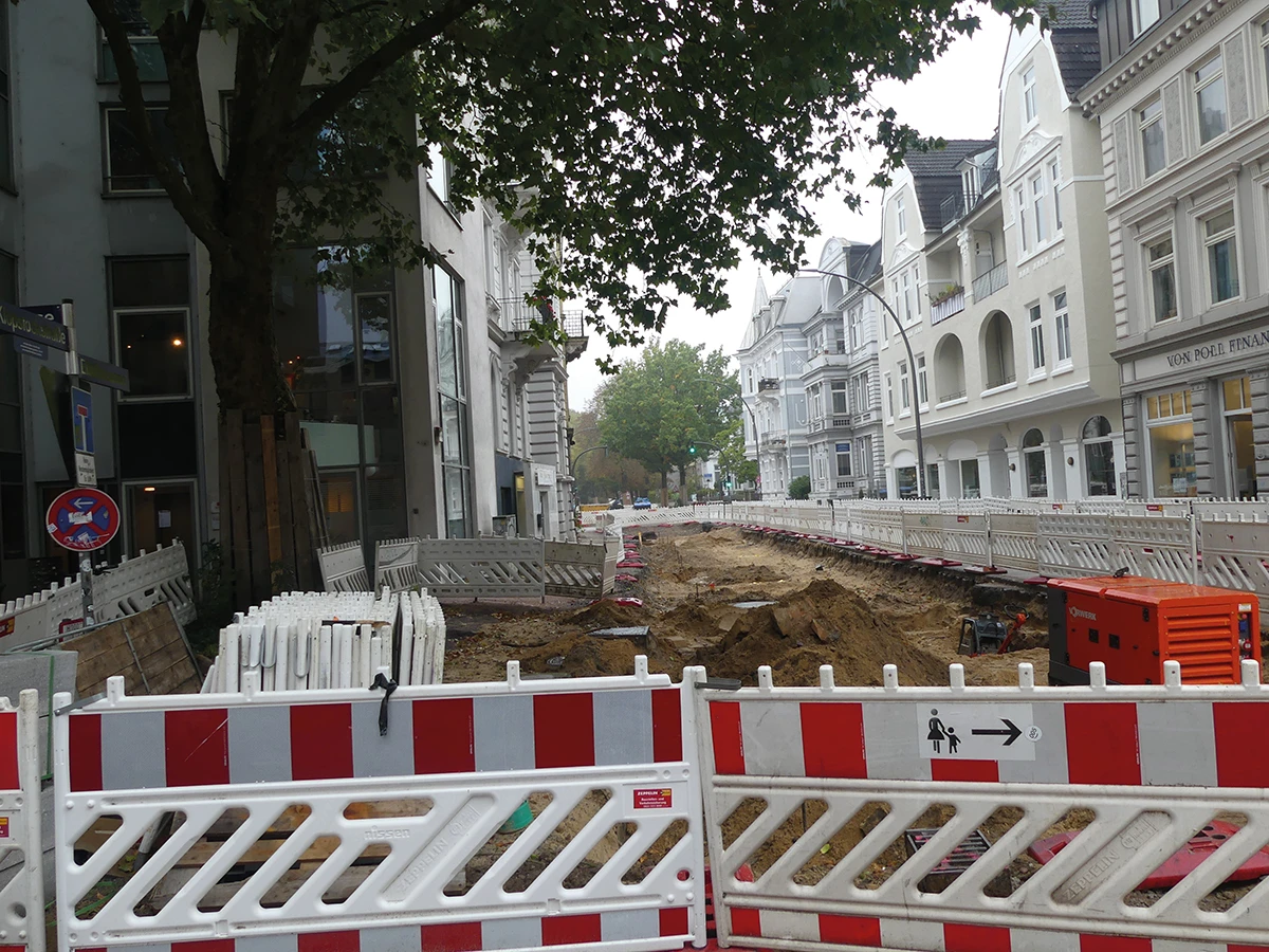Die Elbchaussee ist mit ihrer Lage an der Elbe und der direkten Nachbarschaft zum Hamburger Hafen als eine der schönsten und bedeutendsten Straßen in Hamburg bekannt. Doch auch hier stehen früher oder später Sanierungsarbeiten im Bereich der Fahrbahnen an. Um diese Sanierungsarbeiten möglichst effizient und zeitoptimiert durchführen zu können, haben sich der Landesbetrieb Straßen, Brücken und Gewässer, Hamburg Wasser und die Hamburger Energienetze zu dem Kooperationsprojekt „Elbchaussee 2. BA“ zusammengeschlossen. Neben der Grundinstandsetzung der Straße werden auf einer Länge von rd. 4 km auch die Versorgungsleitungen erneuert. Zudem sollen baulich getrennte Radwege (sog. Kopenhagener Radwege) entstehen und die Gehwege in großen Teilen deutlich verbreitert werden.